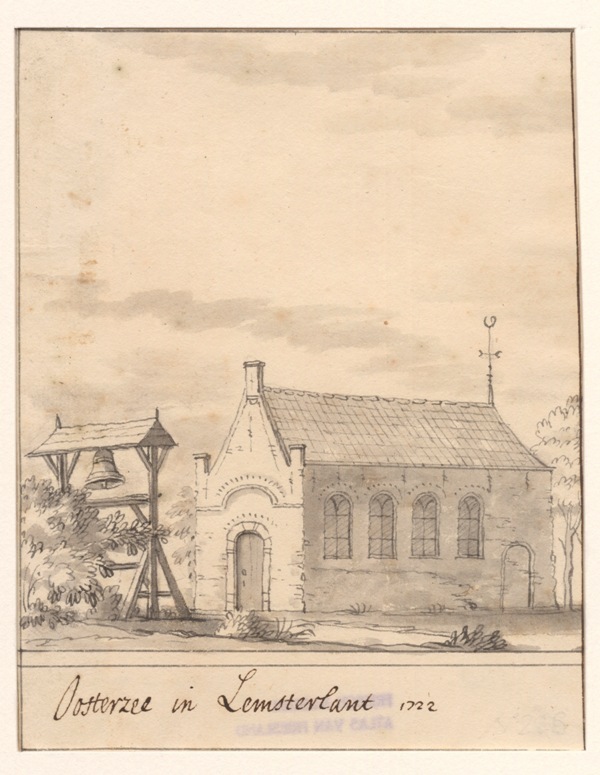 Gezicht op de kerk met klokstelling te Oosterzee in Lemsterland