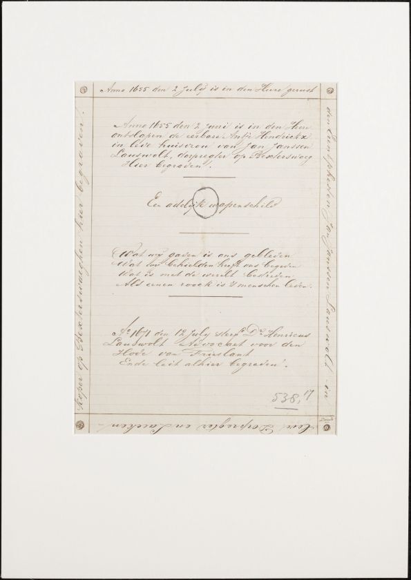Afschrift van de grafsteen van Jan Janssen Lauswolt te Beetsterzwaag