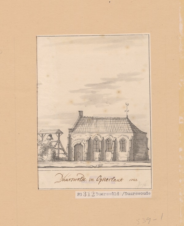 Gezicht op de kerk met klokstelling te Duurswoude in Opsterland