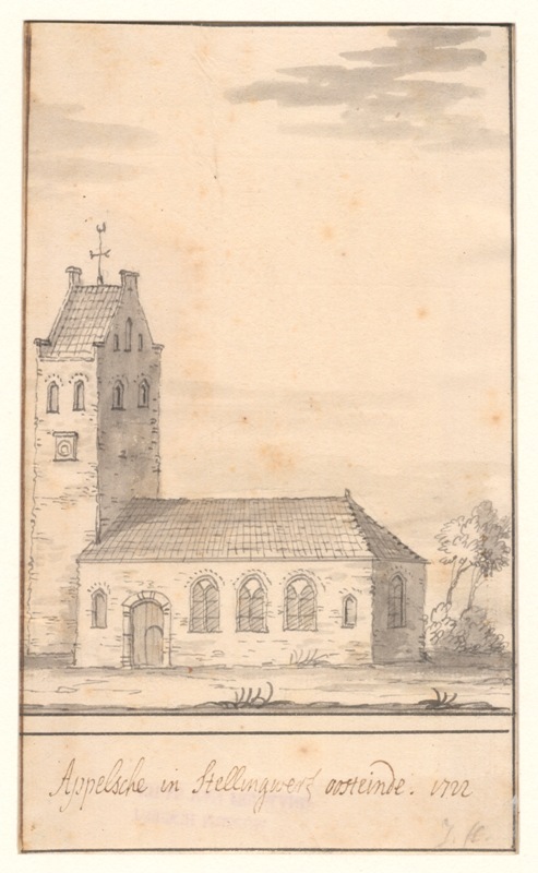 Gezicht op de kerk met de stompe toren te Appelscha in Oost-Stellingwerf