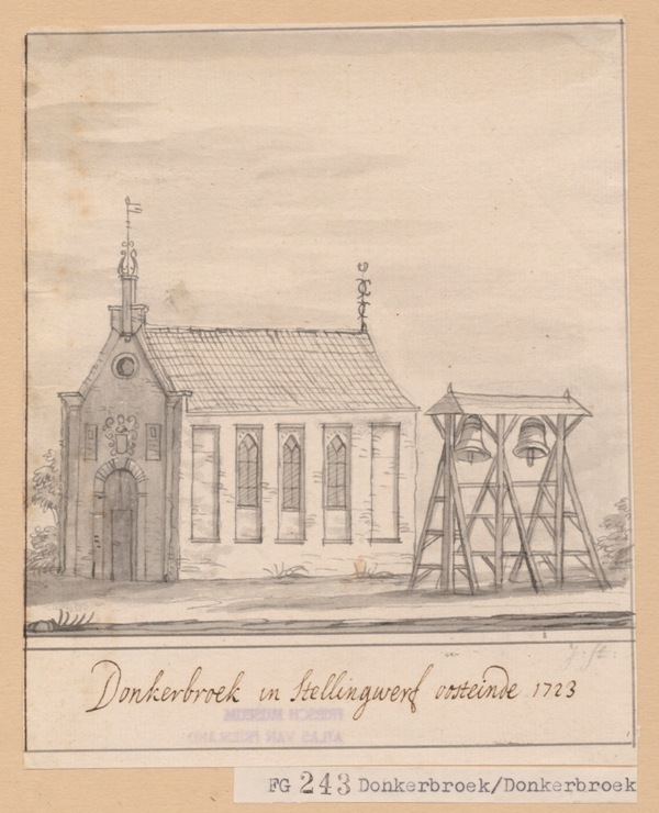 Gezicht op de kerk met klokstelling te Donkerbroek in Oost-Stellingwerf