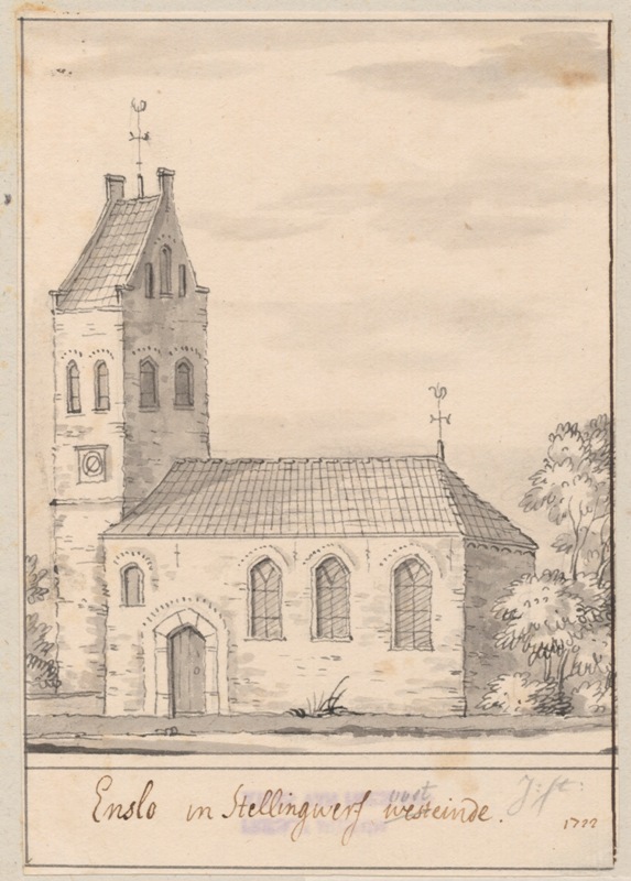 Gezicht op de kerk met stompe toren te Elsloo in Oost-Stellingwerf