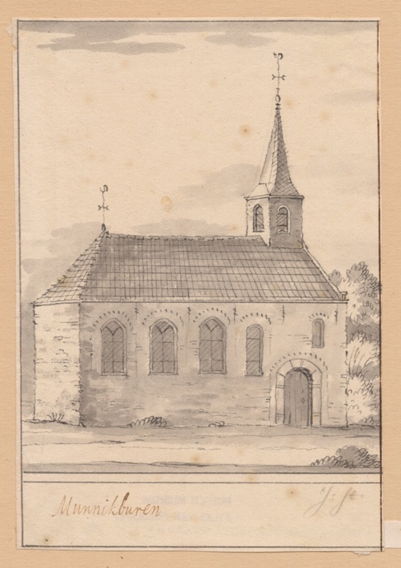 Gezicht op de kerk met spits torentje te Munnikeburen