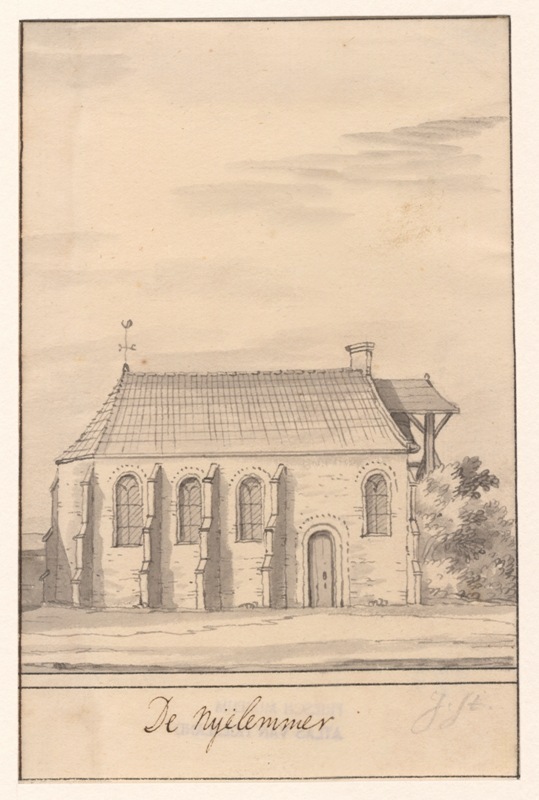 Gezicht op de kerk met klokstelling te Nijelamer in West-Stellingwerf