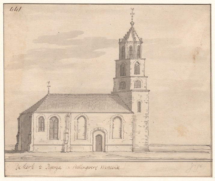 Gezicht op de kerk te Peperga in West-Stellingwerf