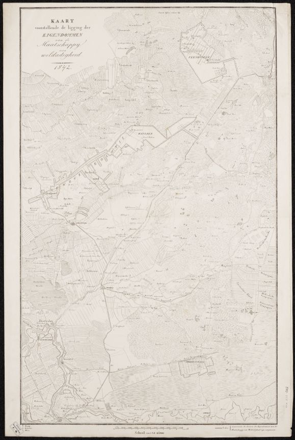 Kaart van de ligging van de eigendommen van de Maatschappij van Weldadigheid in 1842