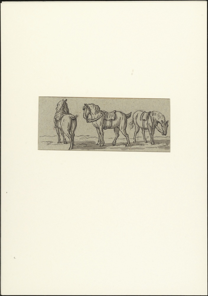 Drie gezadelde paarden