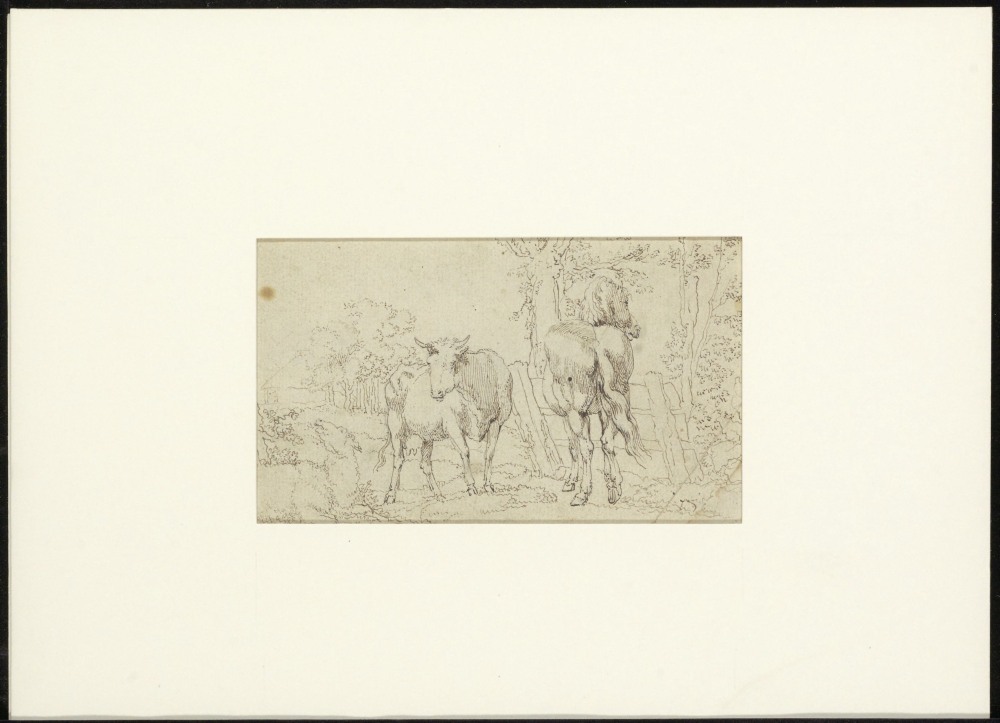 Studie van paard en koe in een landschap