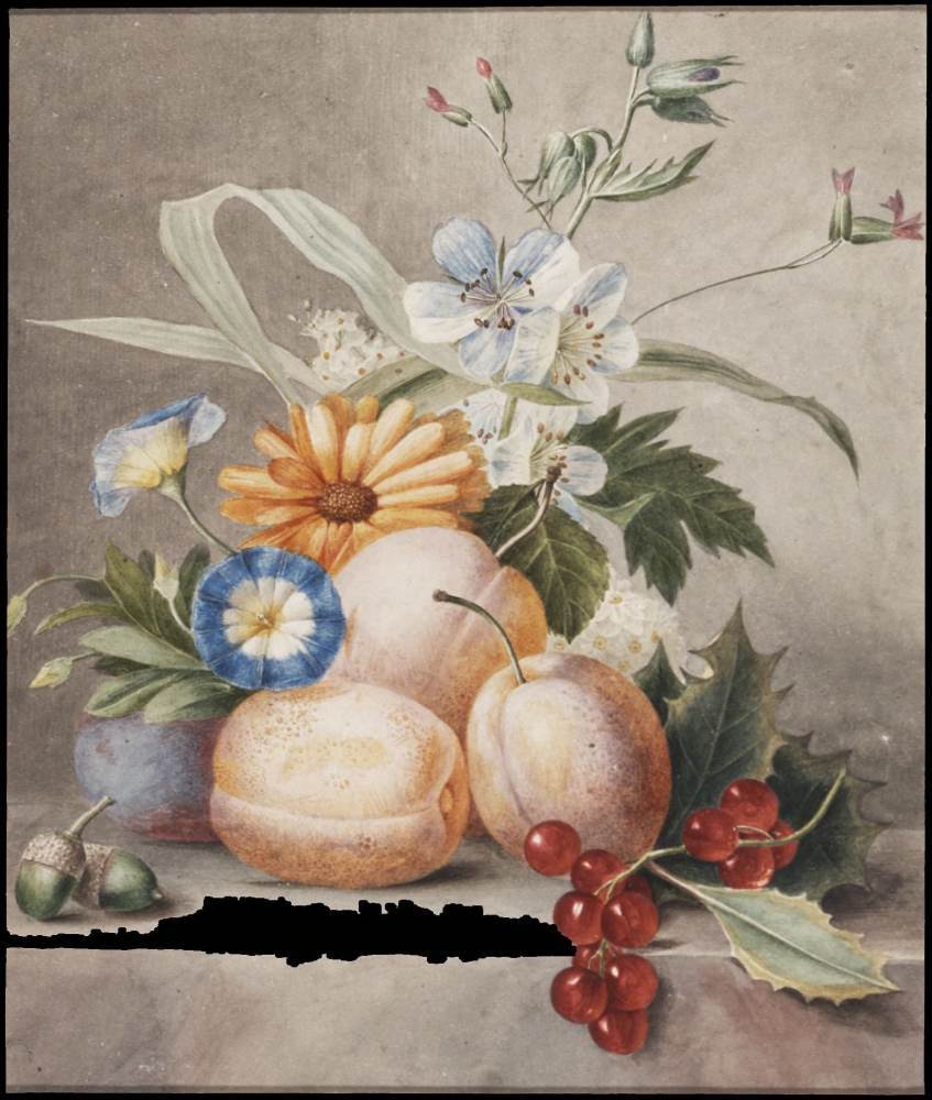 Stilleven met fruit en bloemen