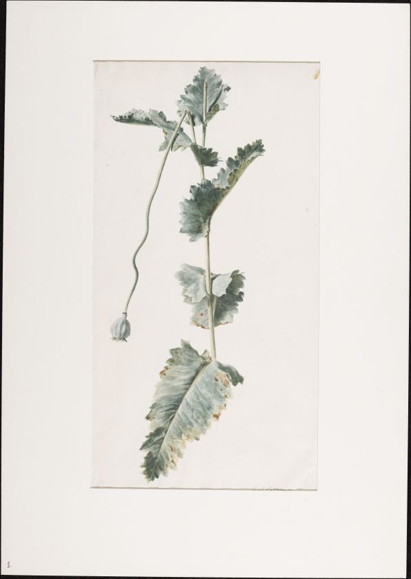 Uitgebloeide papaver met geknakt zaadknop