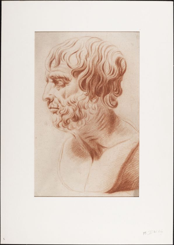 Beeld van de kop van een man met baard, in profiel