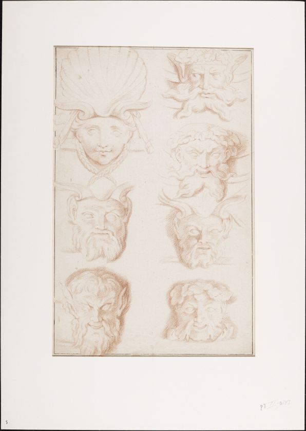 Studieblad met koppen van mannen, vrouwen en saters