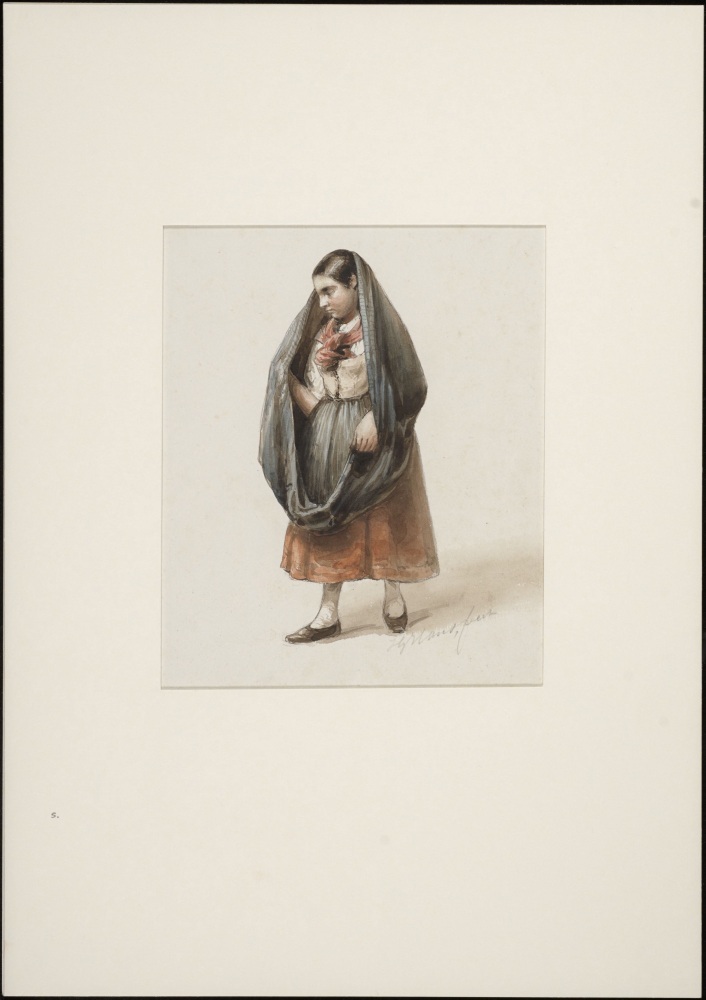 Studie van een vrouw in Italiaans kostuum