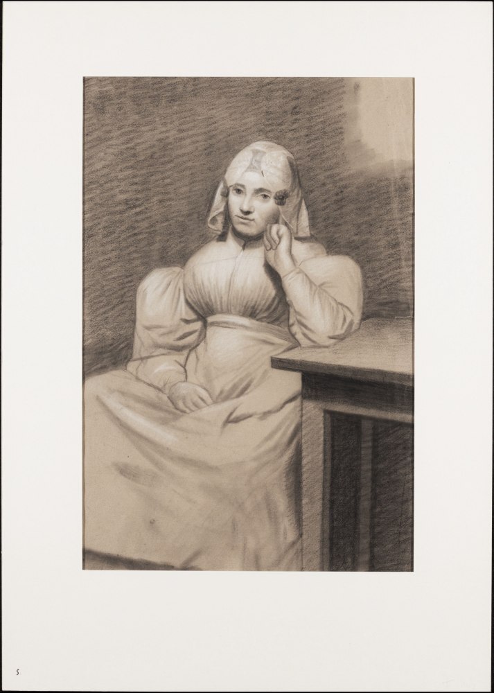 Zittende vrouw met Friese hoofdtooi