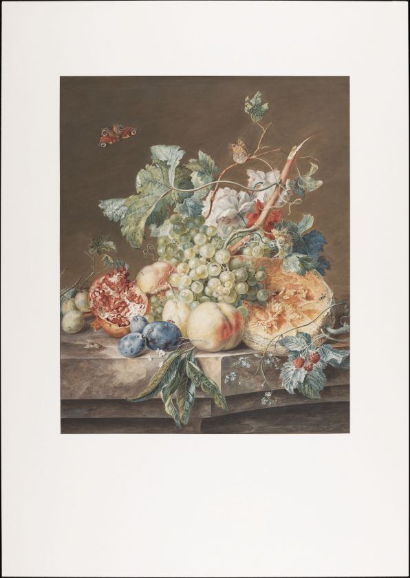 Stilleven van bloemen en fruit