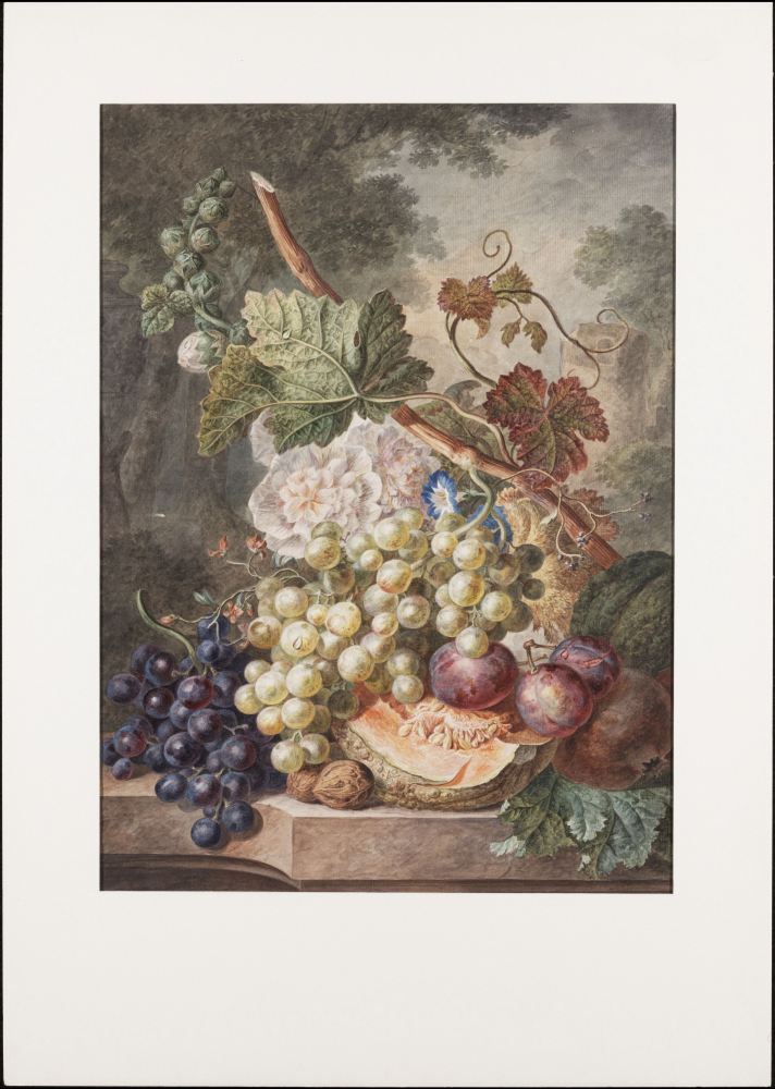 Stilleven van bloemen en fruit