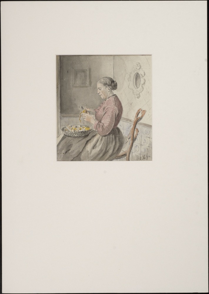 Aardappelschillende vrouw