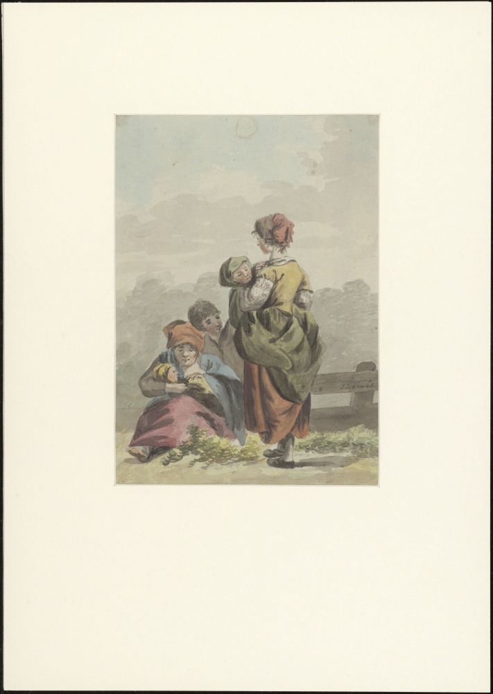 Vrouwen met kinderen bij hek