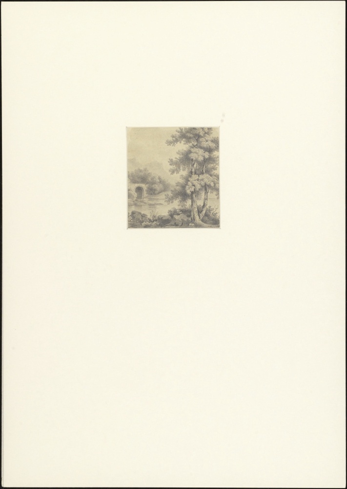 Landschap met stenen brug