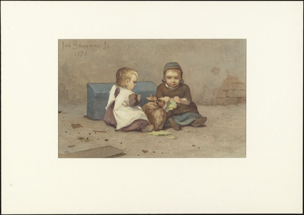 Kinderen spelend met konijn