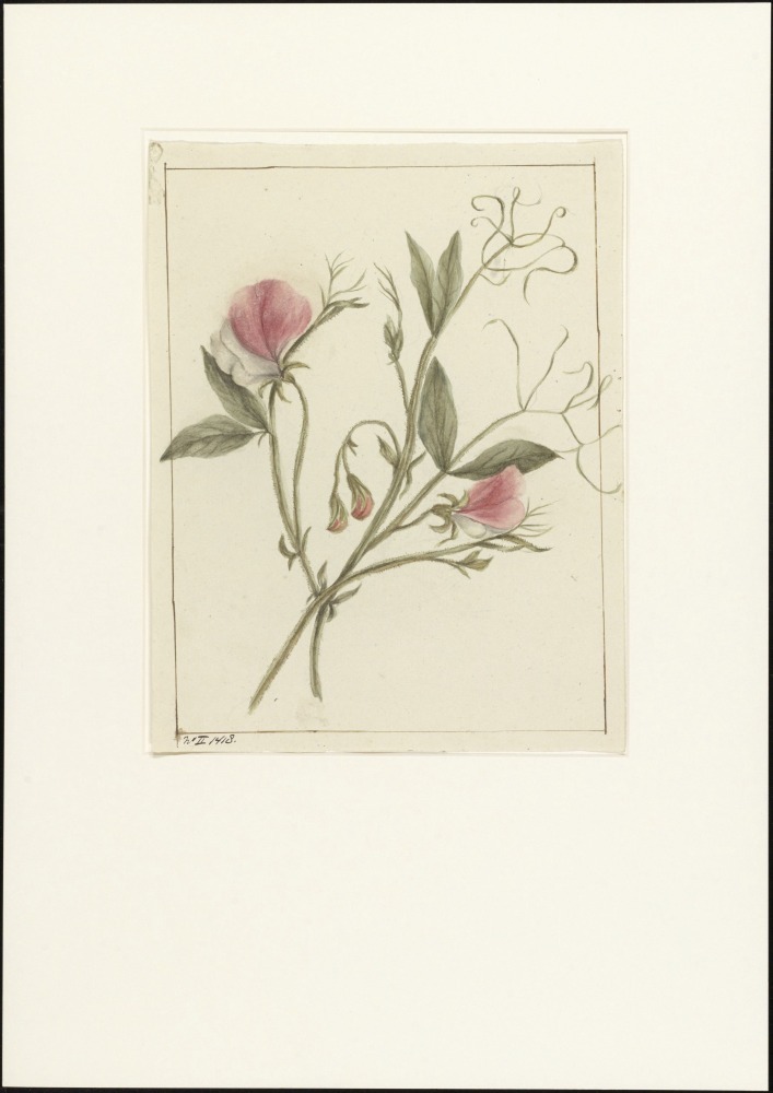 Bloemstilleven en studie van sierewit oftewel Lathyrus