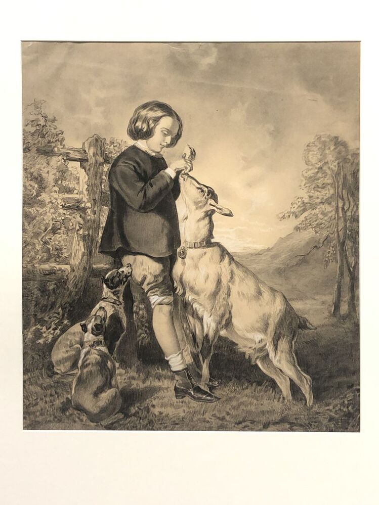 Jongen met honden voert bok