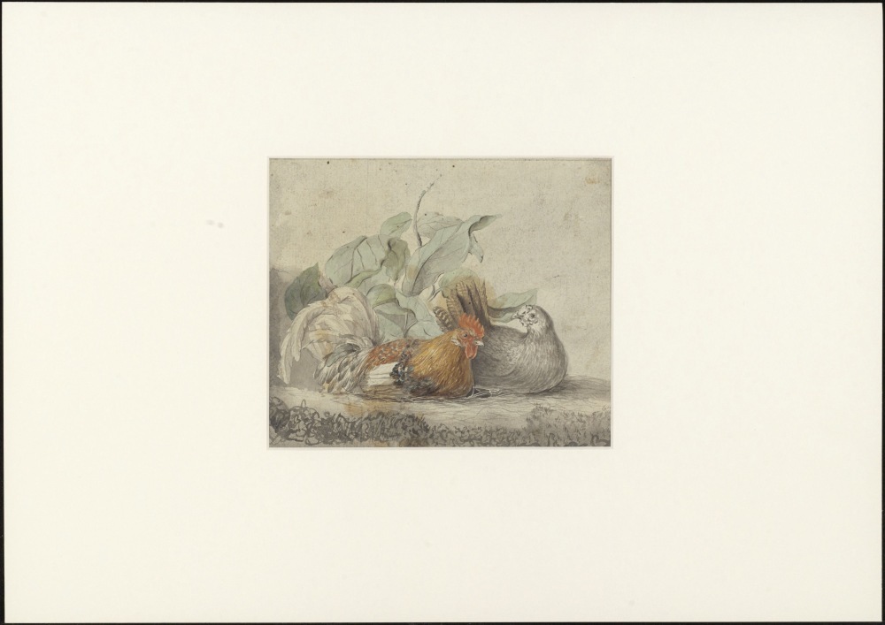 Kip en haan bij plant