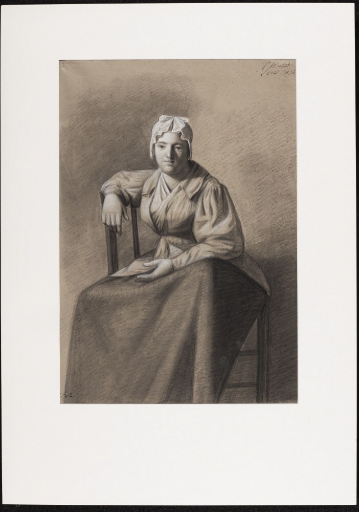 Zittende jonge vrouw, keukenmeid