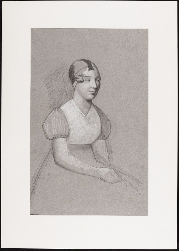 Jonge vrouw met oorijzer en wit hesje