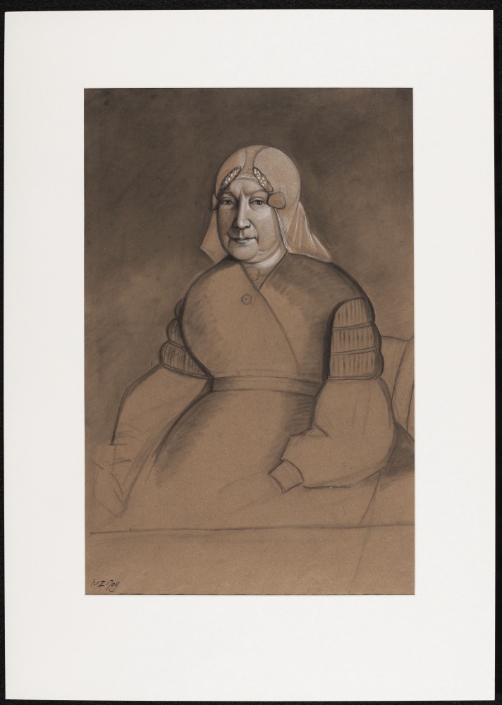 Oude vrouw met kap en oorijzer