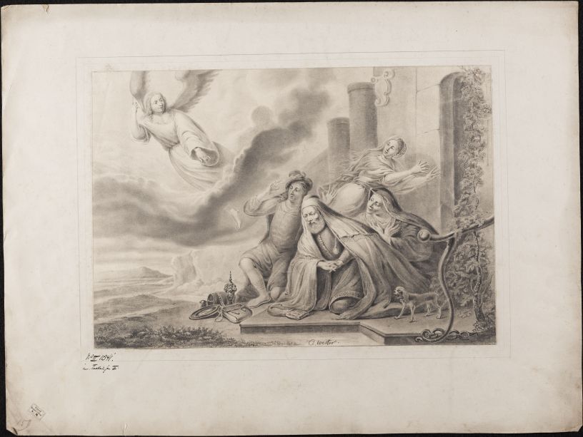 Een engel verschijnt aan eeen groep mensen