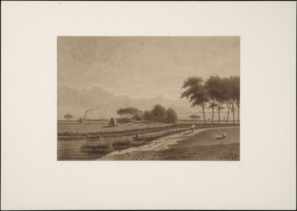 Landschap met o.a. een trekschuit