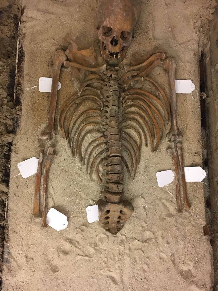 51 onderdelen van het skelet van een vrouw van ca 35-45 jaar.