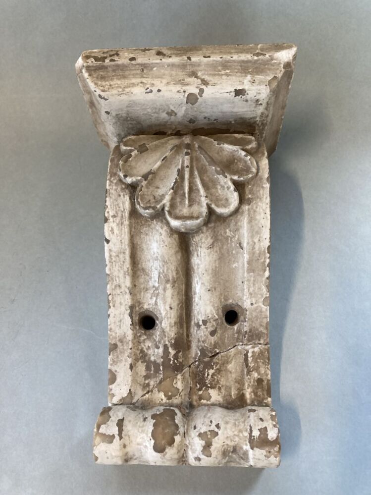 Kraagsteen of houten kraagstuk dat dient om een balk, kroonlijst, boog of beeld te ondervangen. Niet zelden versierd met beeldhouwwerk: een of meer koppen (middeleeuwen) of voluut- of S-vorm (renaissance). https://data.cultureelerfgoed.nl/term/id/cht/29b43b22-63b0-45cd-80aa-aab678d84010