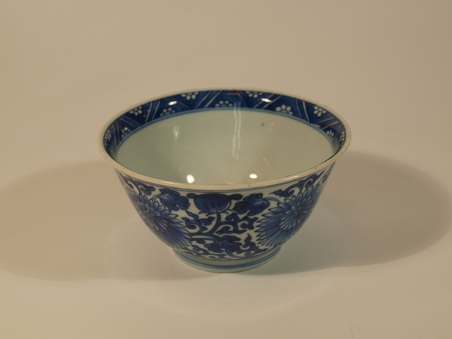Twee kommen van blauw Chinees porselein met bloemmotieven