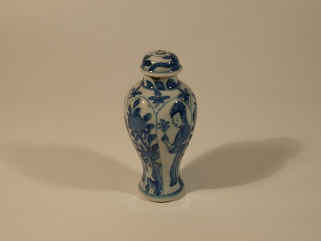 Vaasvormig flesje met dekseltje van blauw Chinees porselein