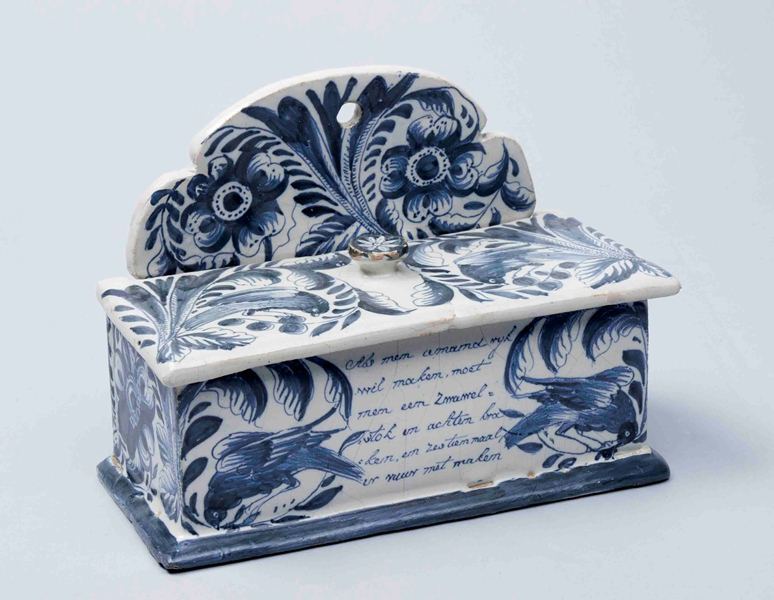 Zwavelstokbakje van blauw Makkumer aardewerk en los deksel
