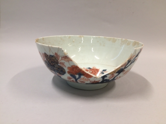 Grote kom van Japans porselein met twee losse scherven