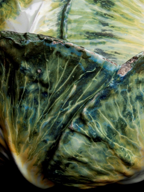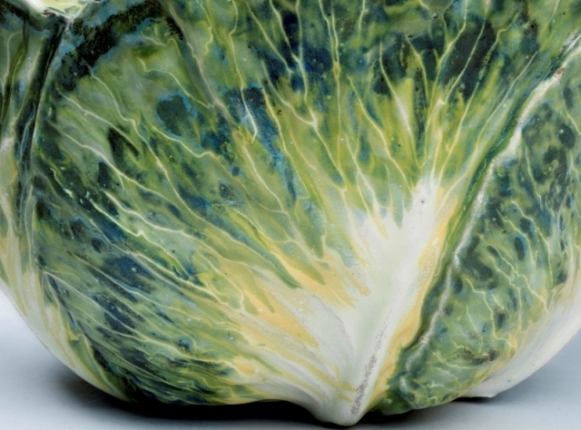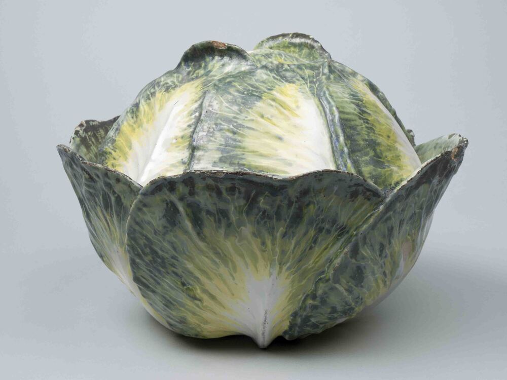 Soepterrine van aardewerk in de vorm van en beschilderd als een savoyekool
