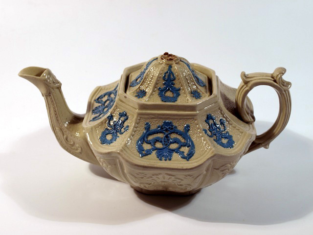 Afgedekte potten voor het laten trekken en serveren van thee, met tuit en handvat en soms met voetjes. Te onderscheiden van 'theeketels' die een hengsel als handvat en een brede, platte onderkant hebben en worden gebruikt om water in te verwarmen waar thee van wordt gezet. (AAT-Ned)