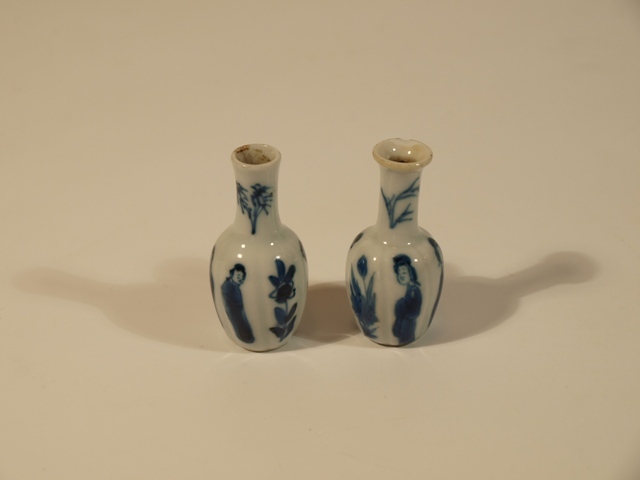 Twee miniatuur vaasjes van blauw Chinees porselein