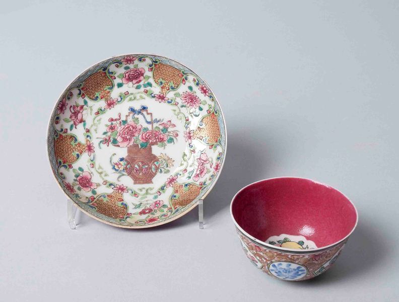 Kopje en schoteltje van Chinees porselein met verschillende decors