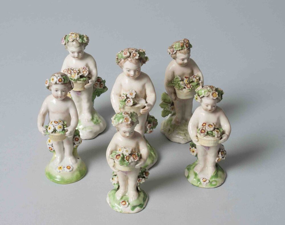 Zes polychromen porseleinen beeldjes