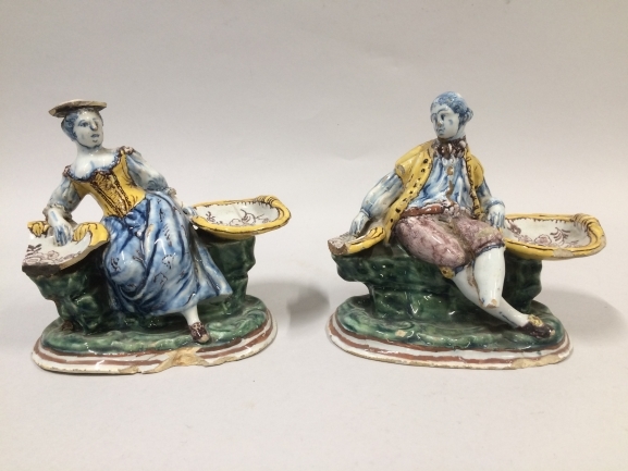 Mannen- en vrouwenbeeldje van polychroom Delfts aardewerk