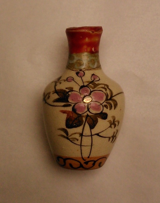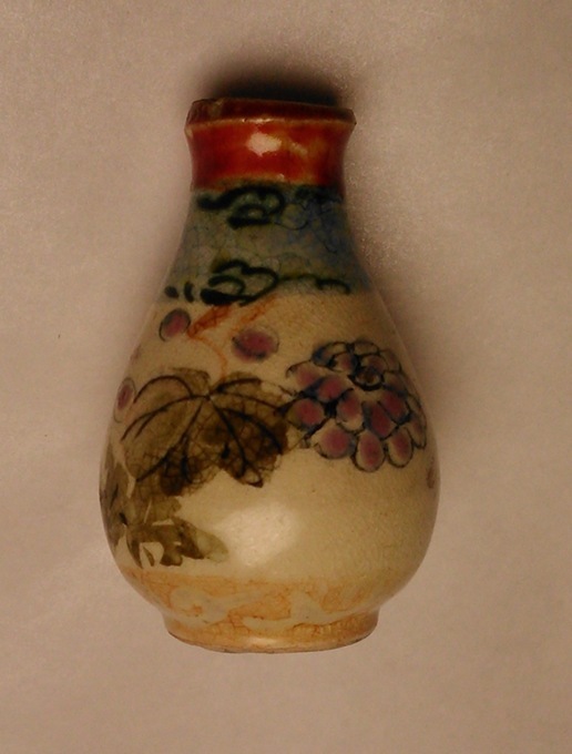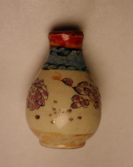 Drie pullen van crèmekleurig aardewerk met beschildering