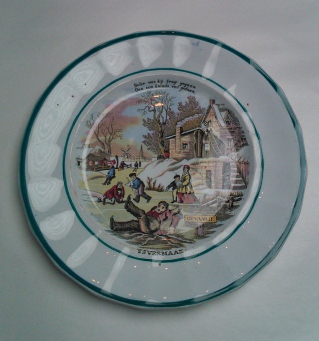 Zes bordjes van Regout-aardewerk