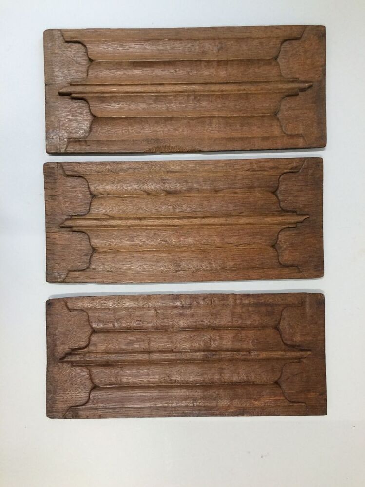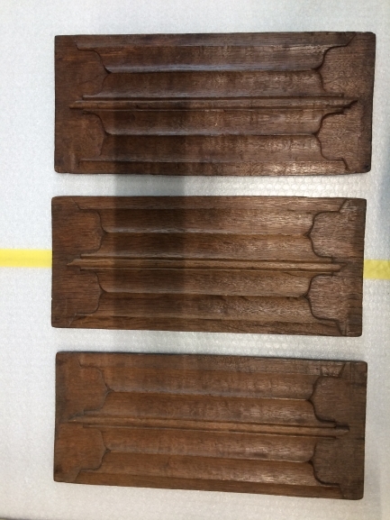Drie houten panelen met reliëf
