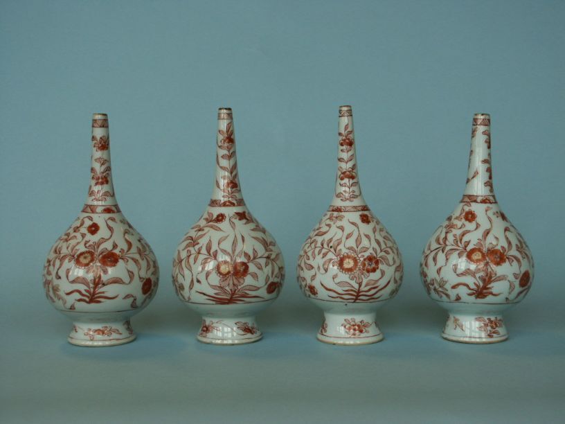 5 sprenkelaars met decor van pioen- en prunustakken, melk en bloed