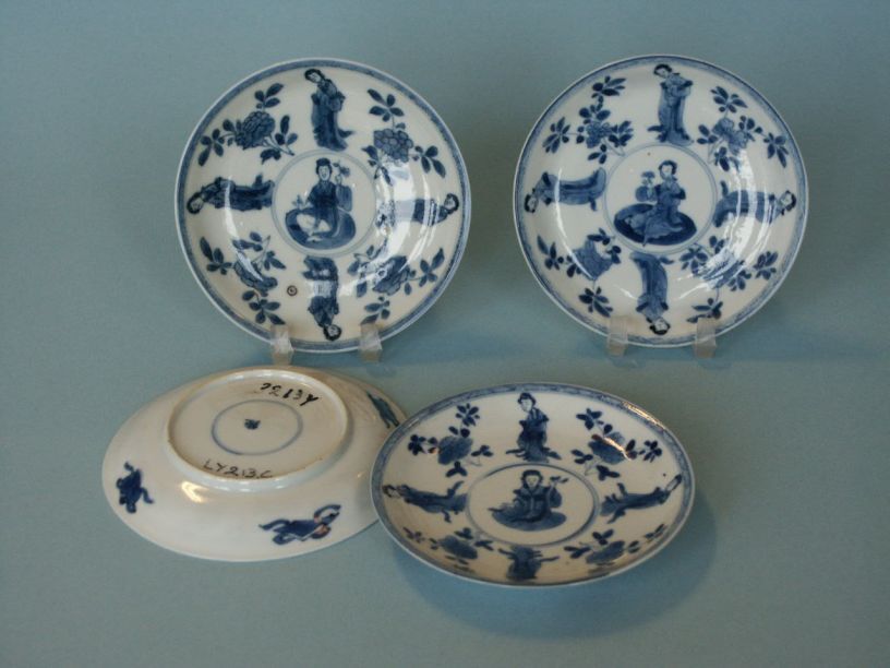 4 schoteltjes met decor van lijze lijzen en bloemtakken