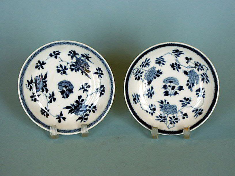 2 schoteltjes met decor van prunus, pioenroos en perzik